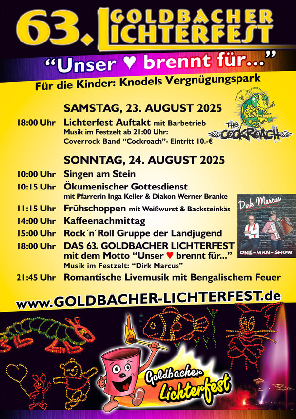 03. Juli 2025 Unser 63. Lichterfest findet am 24.08.2025 unter dem diesjährigen Motto: "Unser ❤ brennt für..." statt tagPlaceholderTags: